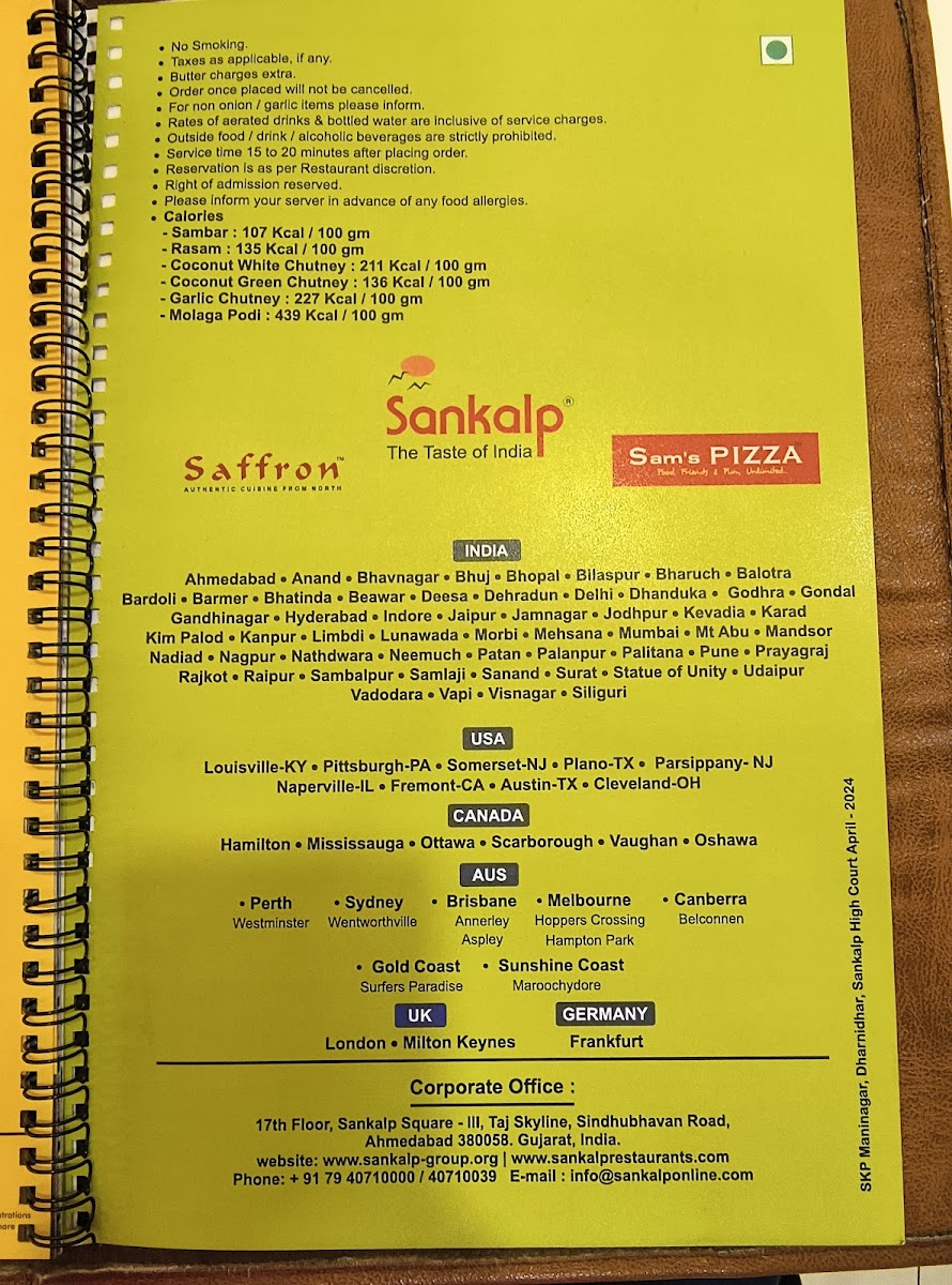 Welcome to Sankalp Restaurant - Ahmedabad, your go-to destination for authentic South Indian vegetarian cuisine nestled in Maninagar. Located at Hariom Complex, this restaurant is famed for its vibrant atmosphere and generous portions. The menu showcases an array of delicious dishes like uttapam, dosa, and meduvada, making it a true haven for food lovers.